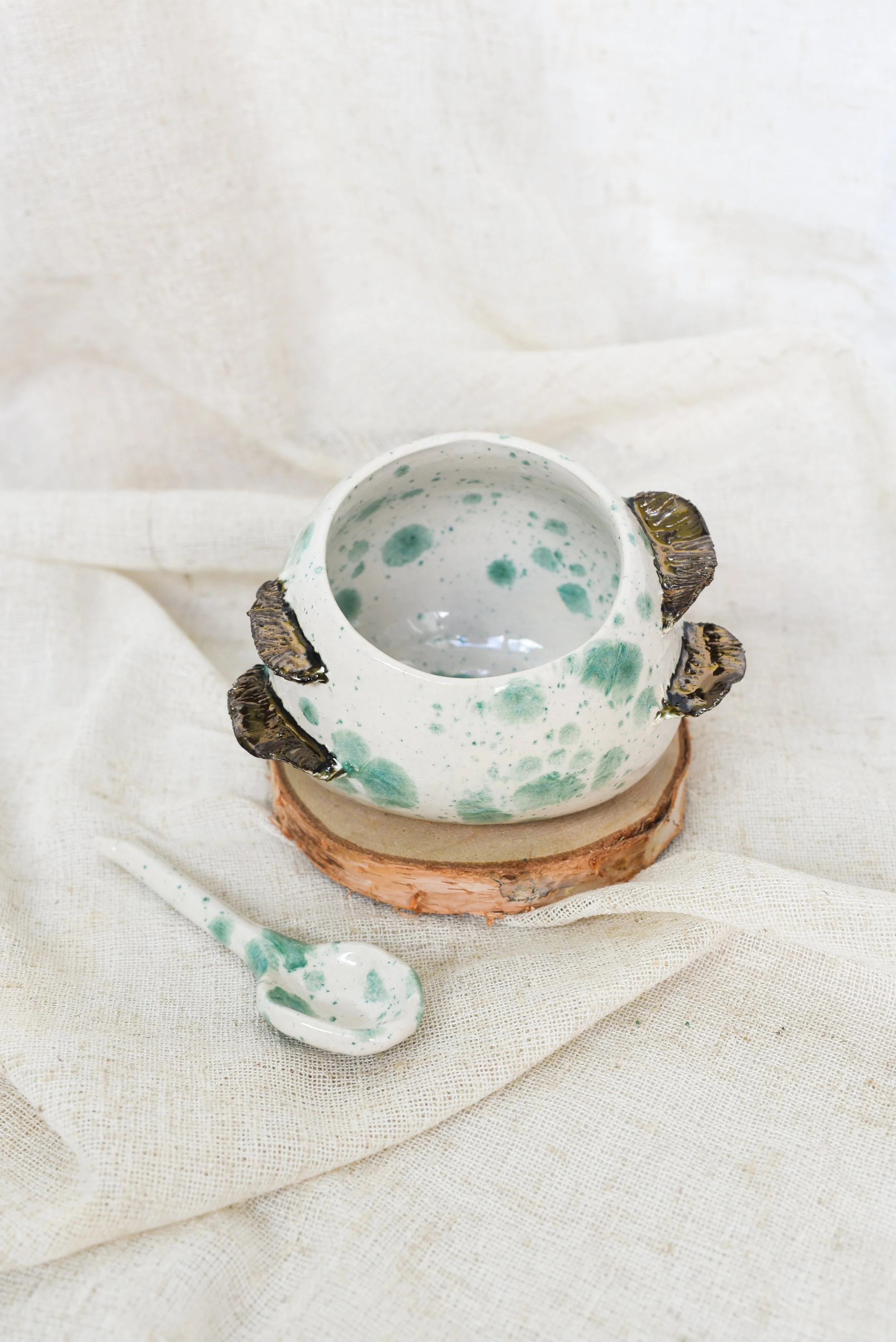 It all began when I was walking through the magical woodlands in North Cornwall and I had to stop every minute to stare and marvel at the different mushrooms, leaves and colours there were around me. I wanted to create ceramics that looked like they’d been pulled straight out of the ground, or found on a tree stump left by a fairy friend.